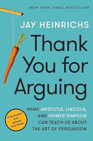“Thank You for Arguing” by Jay Heinrichs is what happens when Aristotle meets stand-up comedy, minus the toga.